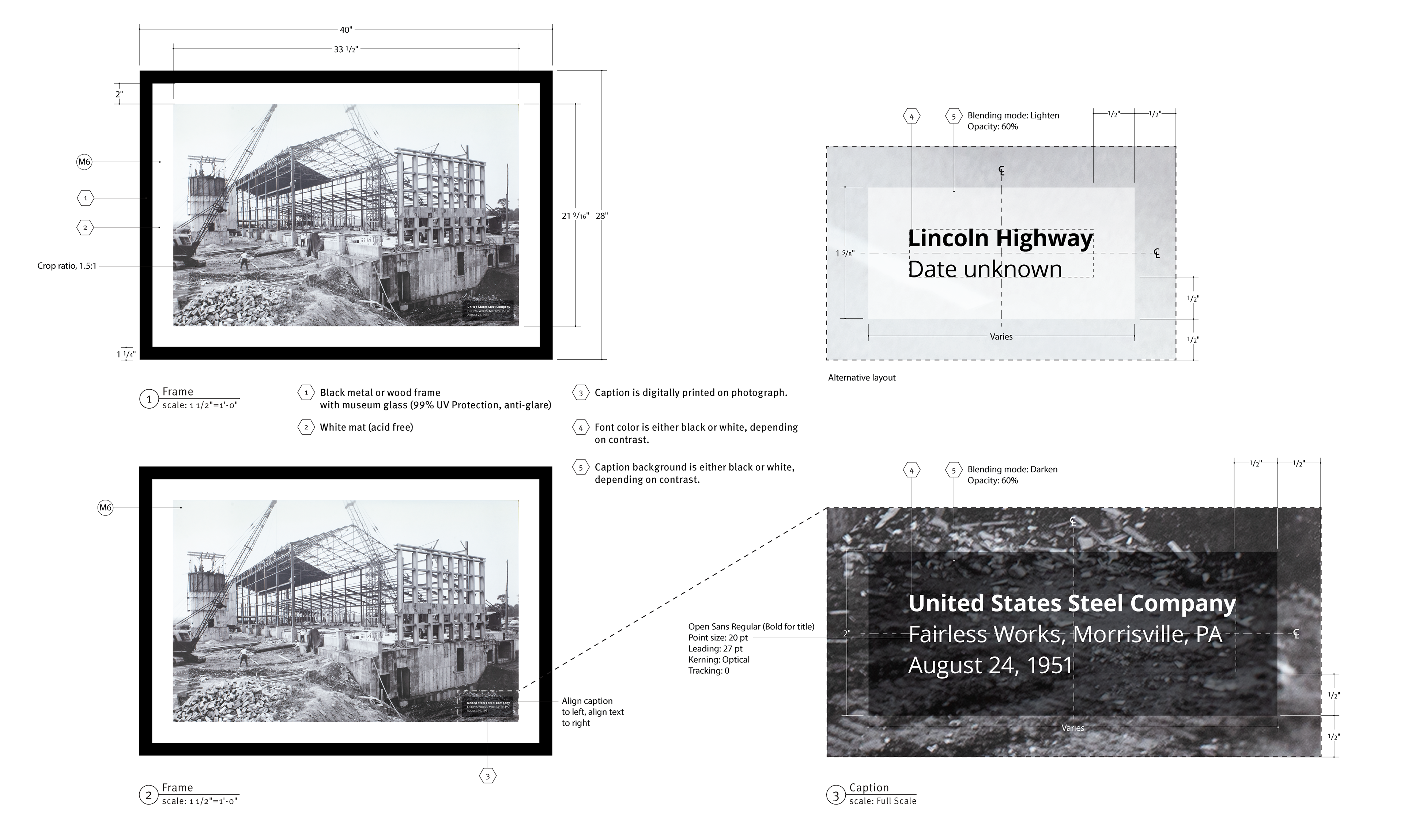 Frame and caption specifications for the historical photographs
