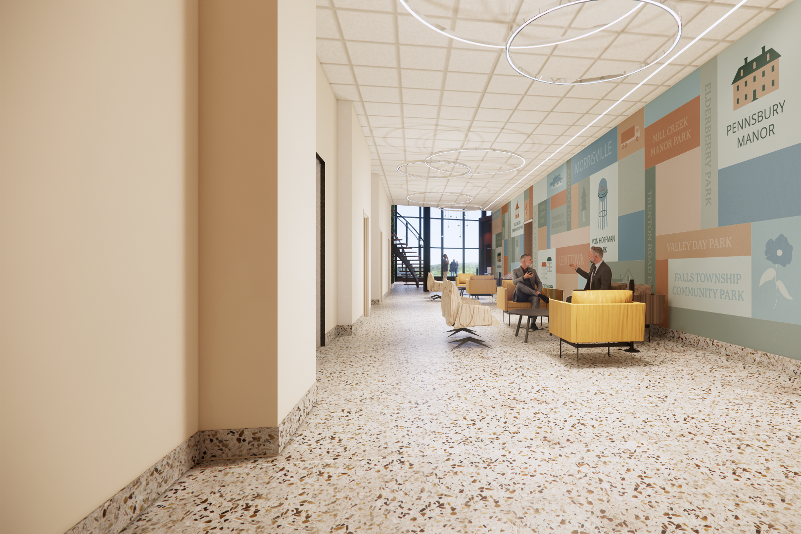 Rendering of map wall of Falls Township