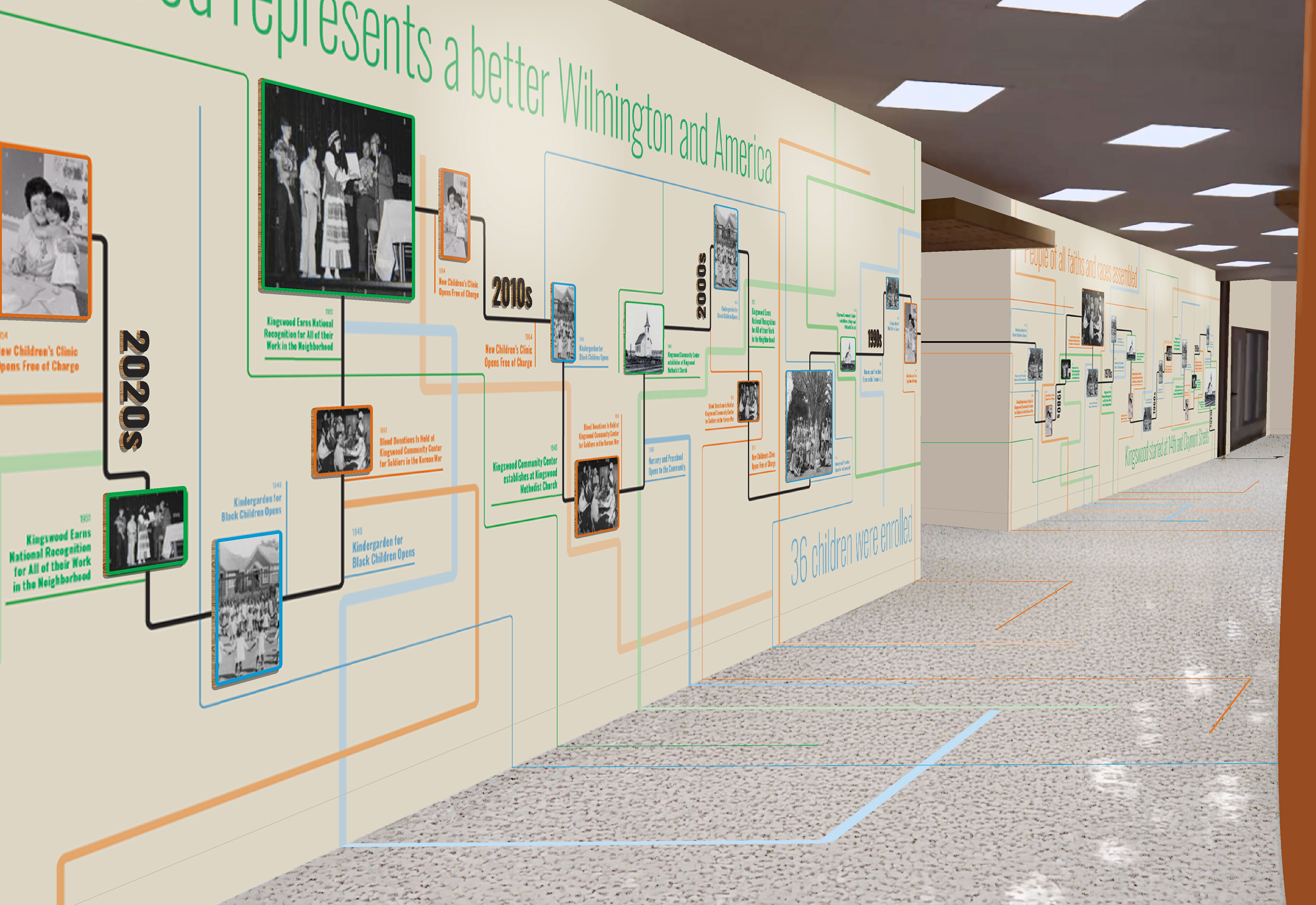 Inspired by transit maps, the timeline wall serves as a visual roadmap where color-coded lines represent the center's core pillars. The system is designed to be scalable, allowing for the integration of more historical data and all five pillars as the community's story continues to be documented.